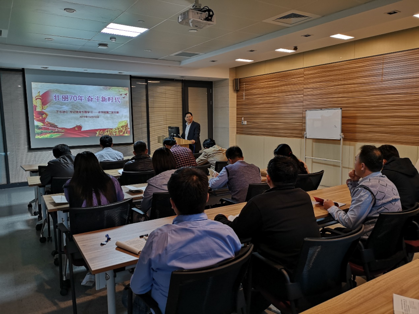 孔令让从国庆节的由来、光辉历程与伟大成就、新中国70年的历史启示、中国特色社会主义新时代、新时代新征程等五个方面展开,详细讲解了新中国成立的伟大意义,全面回顾了党领导全国人民不断进行探索实践的伟大历程和取得的一系列伟大成就,系统梳理了新中国成立70年来的历史启示,深刻阐明了新时代新征程上高校教工的责任和使命。 他强调,新中国成立70年来,中国人民从站起来、富起来到强起来,克服了一个又一个困难,创造了一个又一个奇迹,归根结底是因为有中国共产党的坚强领导。党在世界形势深刻变化的历史进程中始终走在时代前列,在应对国内外各种风险和考验历史进程中始终是全国人民的主心骨,在发展中国特色社会主义的历史进程中始终是坚强的领导核心。 他讲到,习近平新时代中国特色社会主义思想,是马克思主义中国化的最新理论成果,是全党全国各族人民为实现中华民族伟大复兴而奋斗的行动指南,必须学深悟透、长期坚持。 他指出,站在新的历史起点上,全体党员教工要时刻不忘初心,牢记使命,立足本职,爱岗敬业,勇担强农兴农责任,为学院、学校发展,为实现中华民族伟大复兴的中国梦作出新的更大贡献。