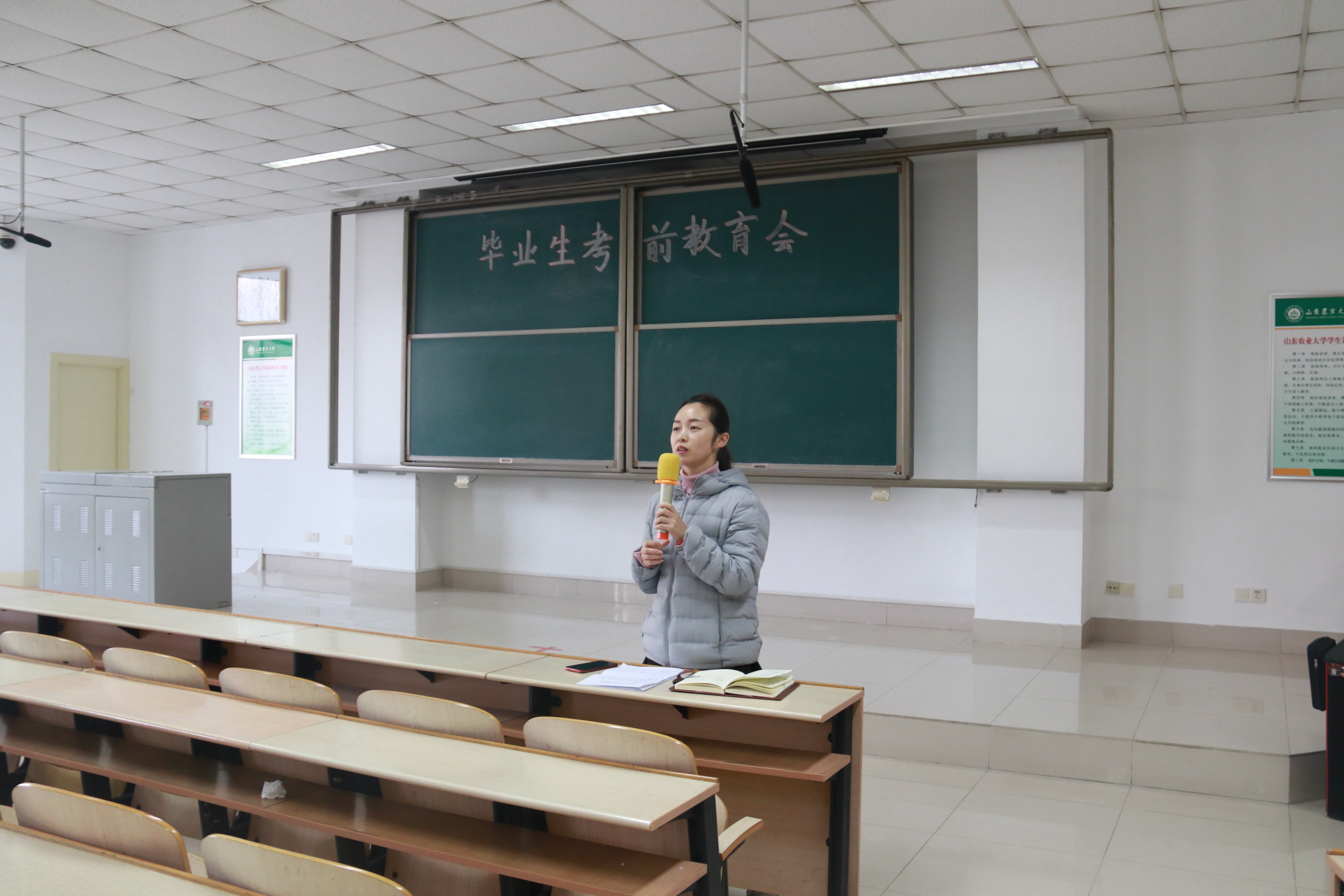 12月19日上午,农学院于综合楼教室N204举办研究生考试考前教育会,辅导员程璐主持本次会议,2016级全体考研学子参加。 本次大会以“诚信考试,轻松赴考”为主题。会议伊始,程璐老师组织同学们进行了按摩操减压小游戏,同学之间互相减压、加油鼓劲,释放压力,会场充满了欢声笑语。在一片轻松的氛围中,程璐老师为全体考研同学做了考前指导,教育同学们诚信考试,放平心态,提醒大家认真查看准考证信息、考试信息,提前去考场踩点,注意自身财物安全等,并祝福同学们取得好成绩。会上还对实习报告的撰写、农科类招聘宣讲会等事宜进行了安排和布置。
