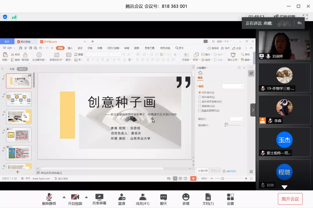 经前期筛选,最终确定14个参赛项目入围此次院赛。比赛采取云端会议的形式,分为“4分钟PPT汇报”、“现场答辩”两个环节。院赛伊始,各团队按抽签顺序依次从背景分析、项目介绍与分工、产品简介、产品定位、市场分析、经营模式等方面进行项目展示。项目内容涵智慧农业、乡村建设、中药抑菌产品开发、作物一体化智能管理等。其中,岁穗安康利用Fhb7小麦赤霉抗病品种及脱毒技术,助力粮食安全保障;瀚土农场给农业插上科技翅膀,推动农场互联网智能管理,运用“农机+农技”绘制农业现代化新蓝图;薪土相传发展合理耕层构建系统,将农作物秸秆残茬覆盖地表,减少土壤水蚀、风蚀,实现作物长期发展,达到节本增效、增产增收效果。在答辩环节中,评委老师结合当前形势对各项目进行提问点评,并给出建设性意见,为项目后期优化提供清晰思路。