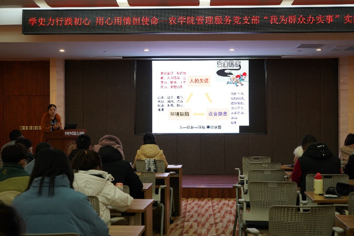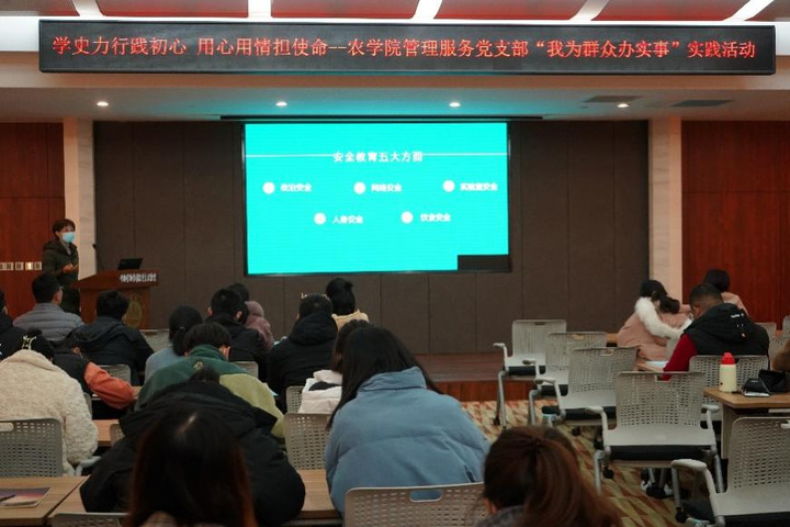 为增强同学们的安全意识,提升研究生的安全防护能力,农学院于20211110日在国重楼报告厅举行了研究生安全专题教育活动。学院管理服务党支部党员教师、部分研究生参加了本次活动。