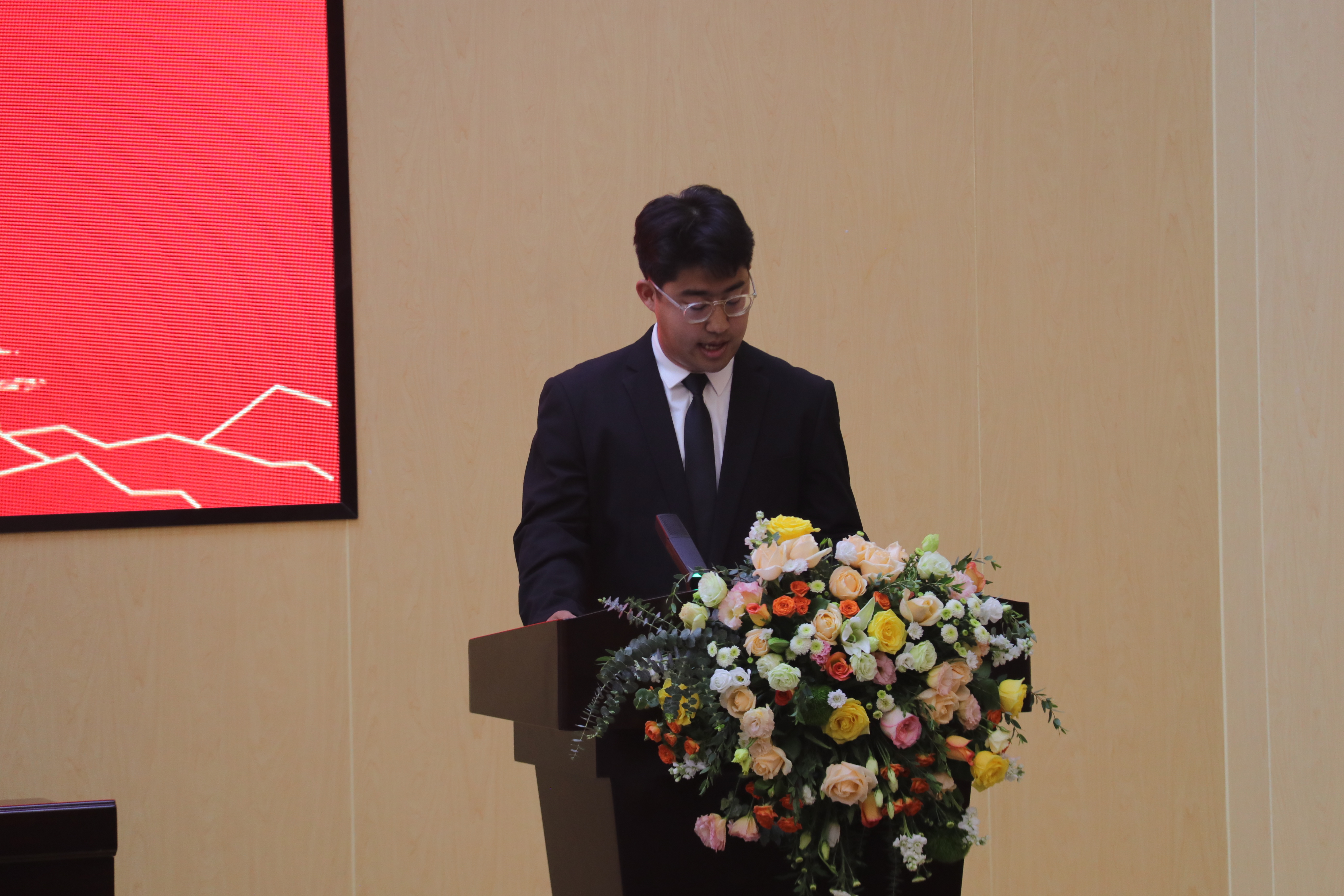 毕业生代表任桂宽发言,表达对母校四年培养的感恩之情,并承诺牢记“登高必自”校训,继续在新的人生阶段砥砺奋进,争做新时代新农人。