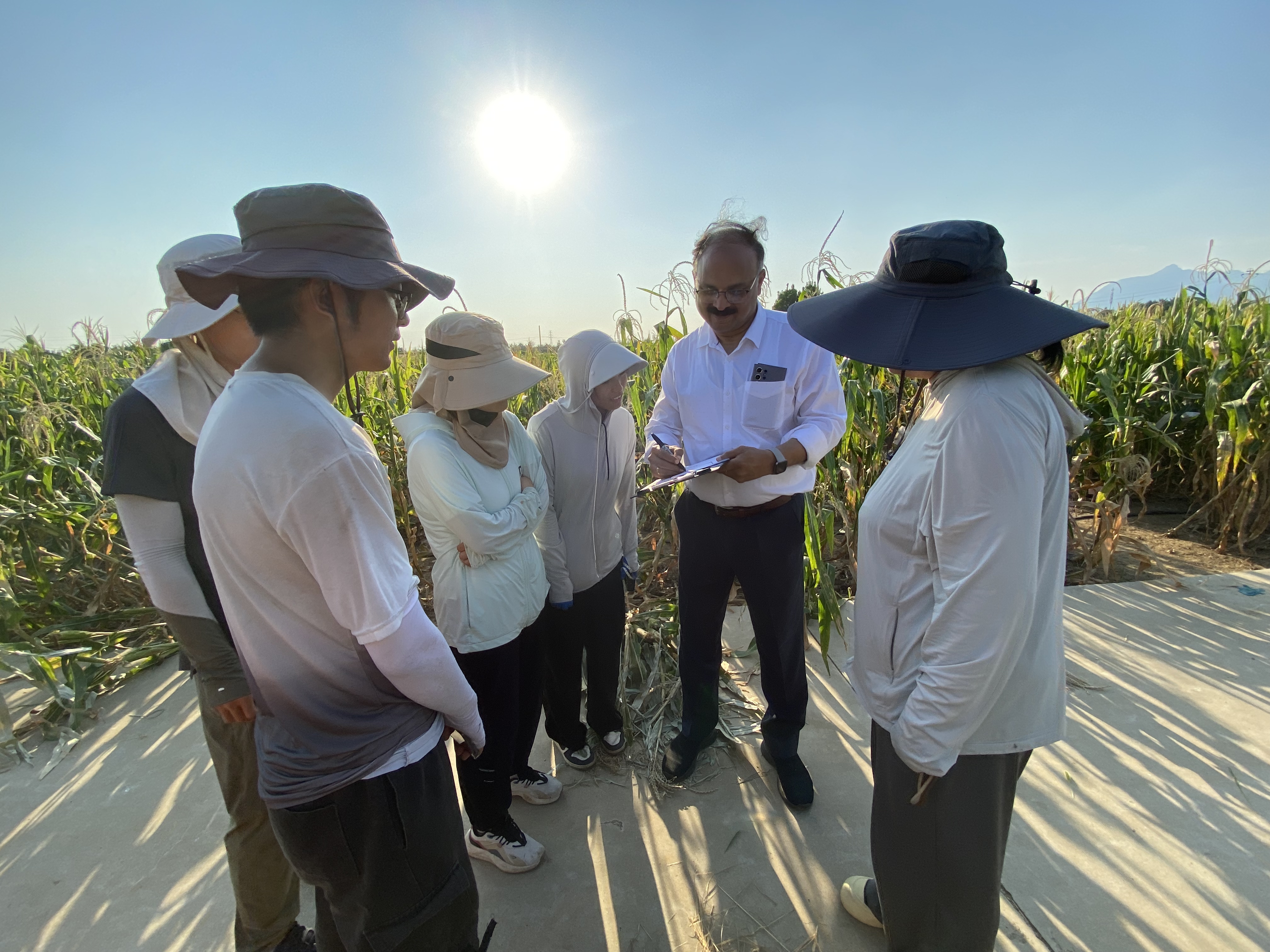 CIMMYT玉米育种专家参观了山东农业大学试验农场,对种植的CIMMYT玉米种质资源进行了观察讨论。双方就如何利用CIMMYT玉米种质资源的抗病促进黄淮海区玉米育种遗传改良进行了分析。Prasanna教授在田间地头指导研究生工作,加强了学术交流,也提升了研究生们的科研热情。